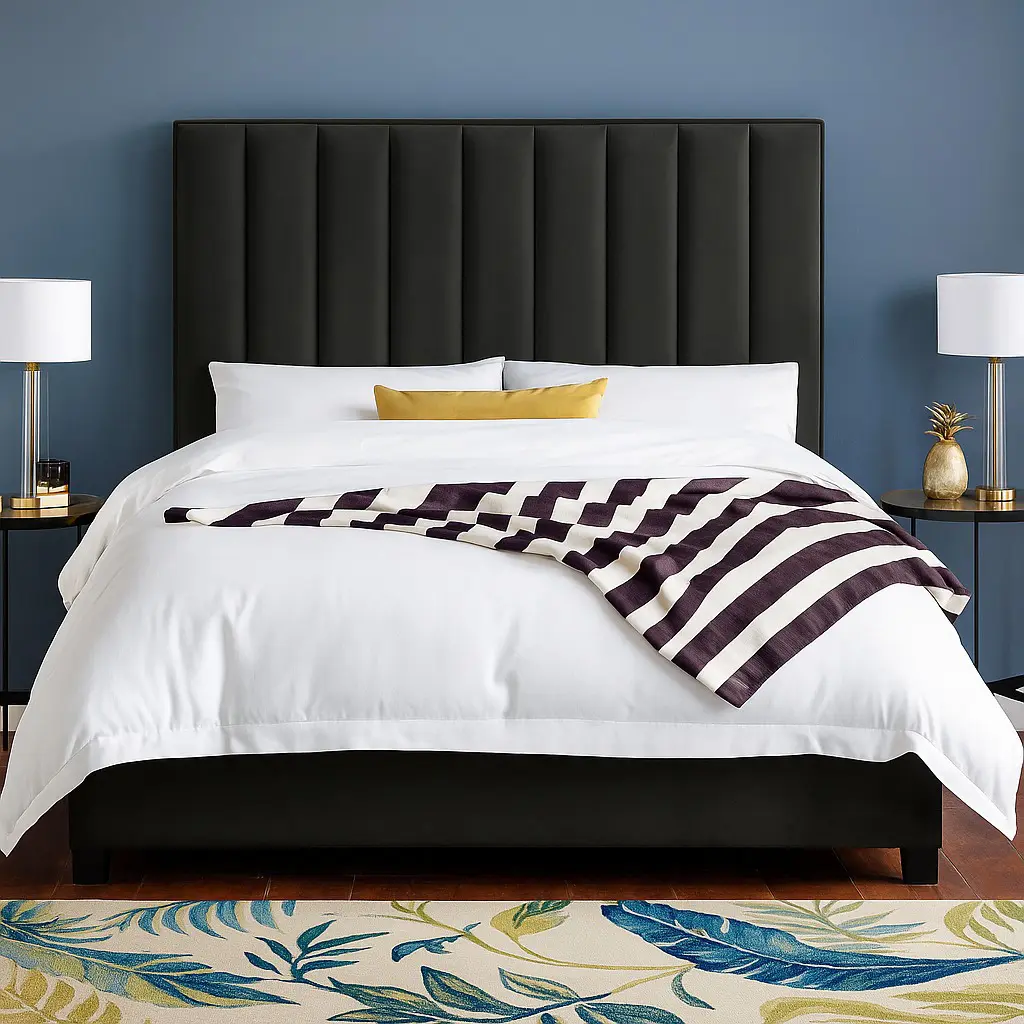 - Channel-tufted headboard