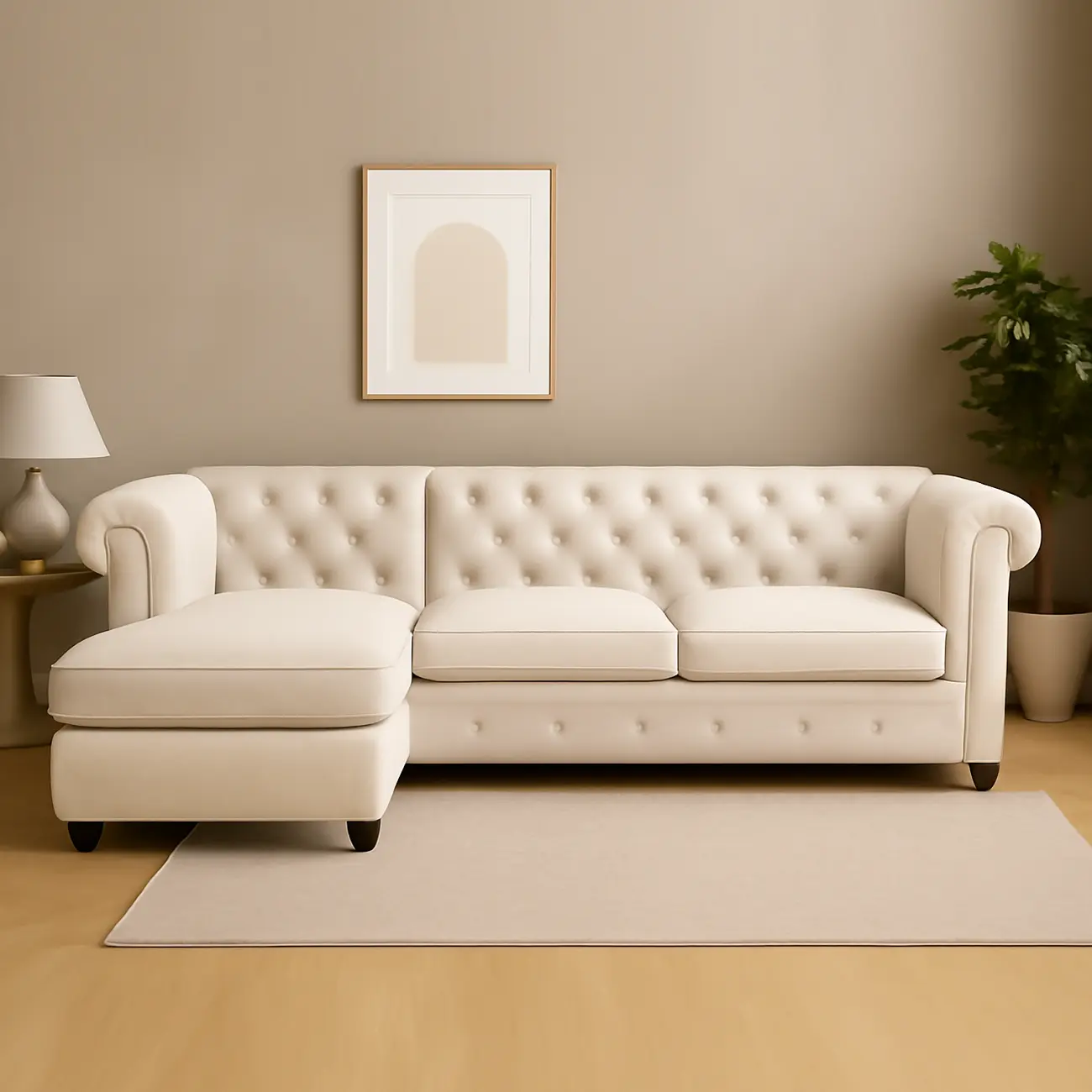 - Soft linen upholstery