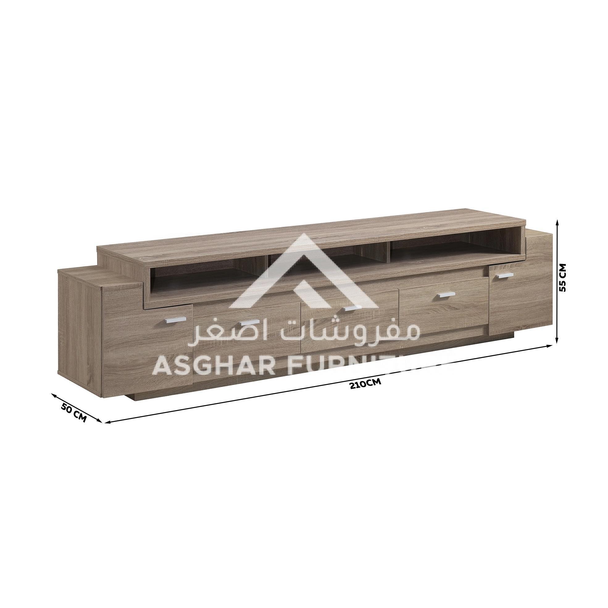 Showcase your flat panel TV on this Essex TV Stand from Asghar Furniture. Constructed of high-grade MDF. Two large cabinets and three storage lower drawers open up with chrome brushed handles enhancing its modern look.